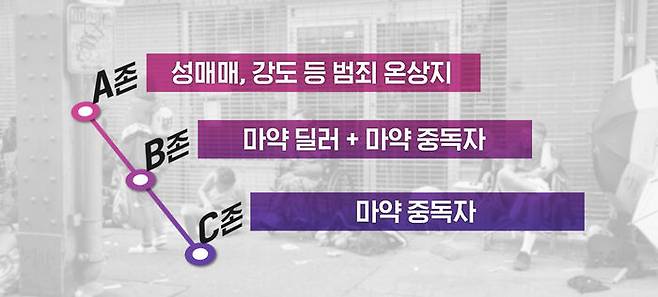'좀비 거리'로 널리 알려진 미국 최대의 마약 거래 시장, 필라델피아 켄싱턴이 바로 그러한데요. 3km 남짓한 켄싱턴 거리는 그 안에서도 범죄 유형과 위험도에 따라 다시 3개의 구역으로 나뉩니다.