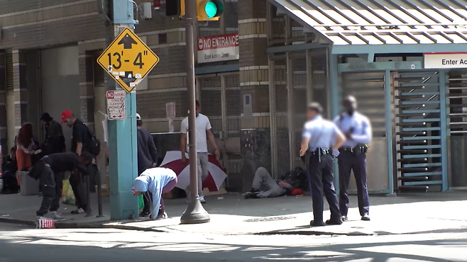 경찰이 옆을 지나도 사람들은 아랑곳 않고 서로 마약이 든 주사를 놔주고, 경찰 역시 대수롭지 않은 듯 휴대폰을 보거나 커피를 마시며 사색(?)에 잠기는 모습도 굉장히 낯설었습니다.