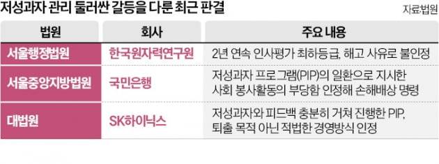 2001년 대기업 IT분야 계열사인 B사 입사해 컴퓨터 시스템 관련 업무를 맡아온 A는 2011년, 최근 3년간 평가 성적 저조를 이유로 저성과자로 선정돼 '저성과자 역량 향상 프로그램(PIP)'을 2차례 수료했다.