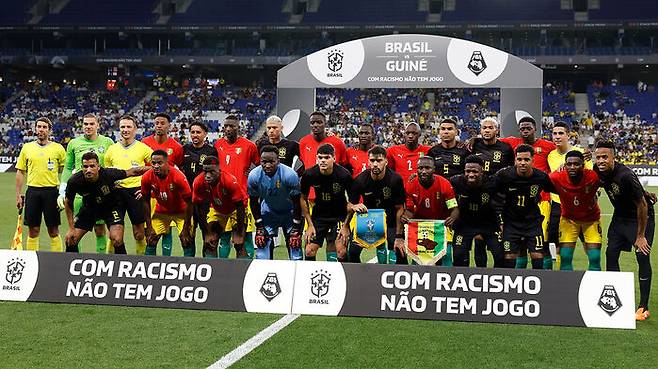 경기 전 브라질은 물론 기니 대표팀 선수들도 '인종차별이 있다면 경기는 없다'고 쓰인 플래카드 앞에서 포즈를 취하고, 무릎을 꿇었습니다.