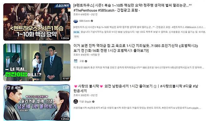 | ▲ 드라마 1시간 몰아보기 유튜브 채널들 섬네일 캡쳐 |
