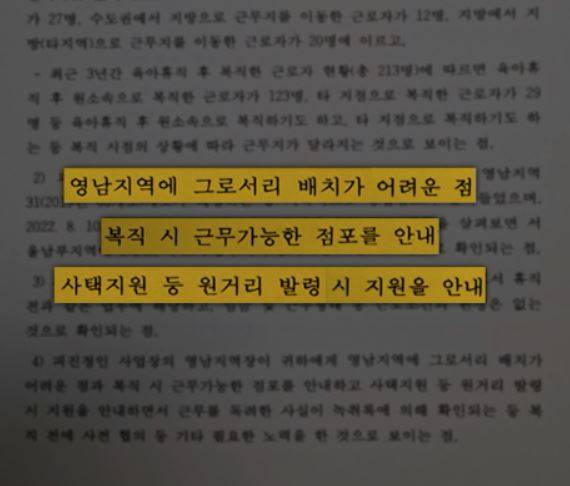 아이를 키우는 것에 대한 배려 없이 지금 부산에서 서울로 발령을 낸 건데, 노동청에서 문제가 없다고 했다고요?