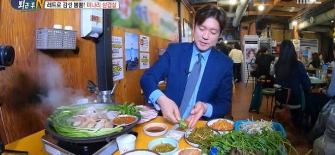 민물 생선을 갈아 만든 국물에 소면을 넣은 어탕국수. 걸죽하고 진한 국물맛이 특징이라고 해요. 김대호 아나운서는 어탕국수를 테이크 아웃해 자연을 벗삼아 먹었죠. 실제로는 테이크 아웃 후 한 번 끓여서 먹어야 한다고 하네요.