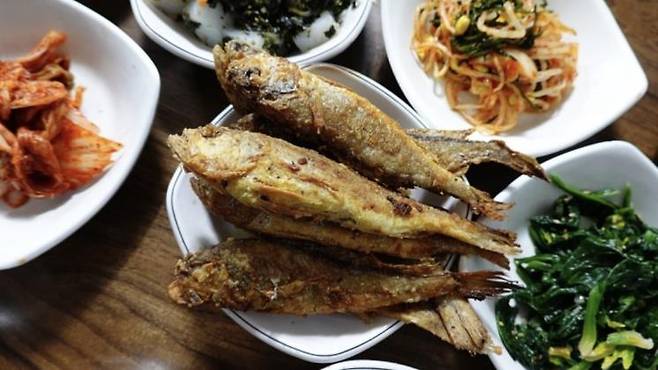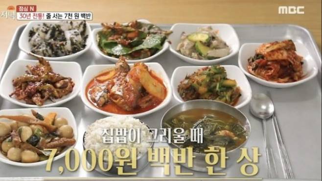 자취하는 직장인이라면 모두 집밥이 항상 그립죠. 이번에는 7천원에 엄마가 해주신 듯한 반찬이 가득 나오는 백반집입니다. 청포묵, 시금치, 메추리알 조림 등 익숙한 찬이지만 깊은 맛을 냅니다. 이 집의 또다른 장점은 바로 무한 리필이 가능하며 흰 쌀밥을 보리밥으로 변경 가능하다는 점.