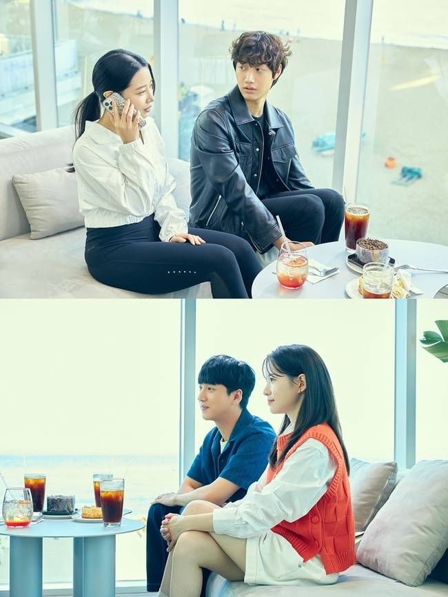 그런가 하면 함께 공개된 또 다른 사진에서는 '로맨스빌런' 주인공 4인방 강희제(차선우 분), 반유진(하승리 분), 남현, 고윤이 처음으로 한자리에 모여 있어 흥미를 자극한다. 이날 방송에서는 반유진과 고윤이 팽팽한 기 싸움을 벌일 예정. 누군가와 전화 통화를 하고 있는 고윤과 입은 웃고 있지만 눈에는 잔뜩 힘을 주고 있는 반유진의 싸한 표정이 심상치 않은 분위기임을 짐작하게 한다.