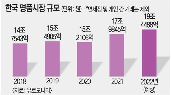시장조사업체 유로모니터가 분석한 지난해 한국의 명품 구매력은 연 19조원 수준인데, 세계 7위다. 유로모니터는 한국에서 “명품 소유에 대한 심리적 장벽이 낮아졌다” “온라인 구매처가 확대됐다”고 말한다. ‘샤넬’ 등 명품 브랜드들은 미성년자인 한국 연예인들에게도 ‘앰버서더’ 자격을 부여하고 있다. 초등학생들도 명품 브랜드의 이름을 꿰게 된 건 그 결과다. ‘펜디’ 등 명품 브랜드 업체 여러 곳에서 근무했던 B씨는 “세계 시장 가운데 한국의 매출을 본 본사가 매우 놀랐었다”며 “한국지사 근무 인원을 늘리는 등 ‘대우’가 달라졌다”고 최근의 추세를 말했다.