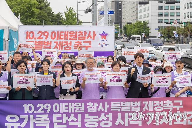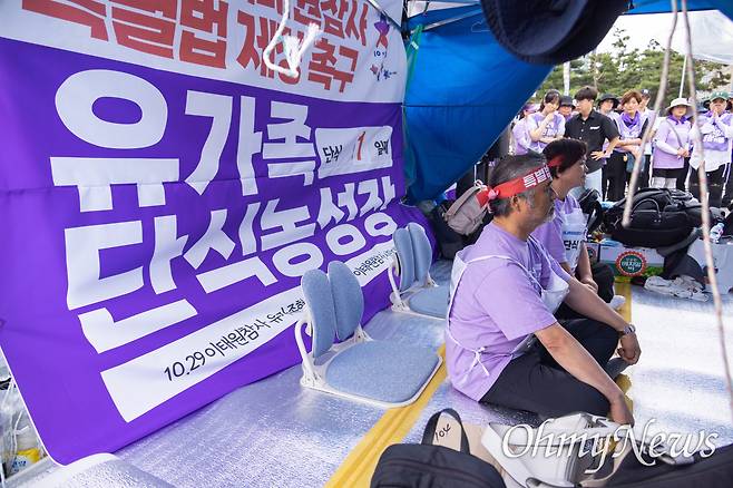 유족들은 자신들이 간절히 소망하는 이태원 참사 특별법이 집권여당의 몽니에 가로막혀 있다며 답답함을 거듭 토로했다. 최선미씨와 함께 단식에 들어가는 고 이주영씨 아버지, 이정민씨(10.29 이태원 참사 유가족협의회 대표 직무대행)도 "특별법은 우리 유족들에겐 마지막으로 걸어볼 수 있는 희망의 생명줄과도 같은 것"이라며 "여당인 국민의힘 의원들은 더 이상 우리를 외면하지말고 유족을 만날 수 있도록 손을 내밀어달라"고 말했다.