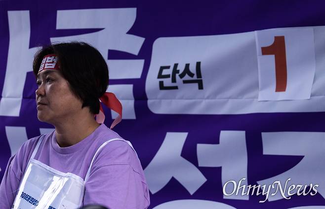 | ▲ 이태원참사 유가족운영위원회 대표직무대행 이정민씨가 20일 오후 서울 여의도 국회 앞에서 '이태원 참사 특별법' 제정촉구 유가족 단식 농성을 시작하고 있다. |