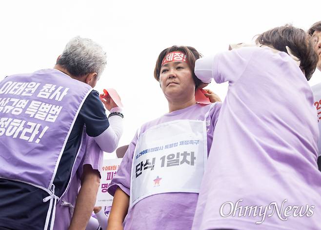 | ▲ 이태원참사 유가족운영위원회 위원 최선미씨가 20일 오후 서울 여의도 국회 앞에서 '이태원 참사 특별법' 제정촉구 유가족 단식 농성을 시작하고 있다. |