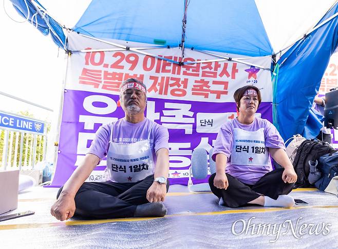 | ▲ 이태원참사 유가족운영위원회 이정민 대표직무대행과 최선미 운영위원이 20일 오후 서울 여의도 국회 앞에서 '이태원 참사 특별법' 제정촉구 유가족 단식 농성을 시작하고 있다. |