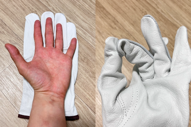 정씨는 “모재(母材)에 용접봉 같은 금속 첨가물을 계속 밀어 넣으며 쇳물을 만들어야 하는데, 손가락이 어디까지 닿았는지 감이 없는 채로 일한다”고 말했다. 이어 “실측 길이가 조금 작은 장갑을 사서 써봤는데도 큰 차이가 없었다”면서 “불에 강한 가죽 재질이라 자르거나 박음질해서 줄이는 것도 불가능하다”고 덧붙였다.