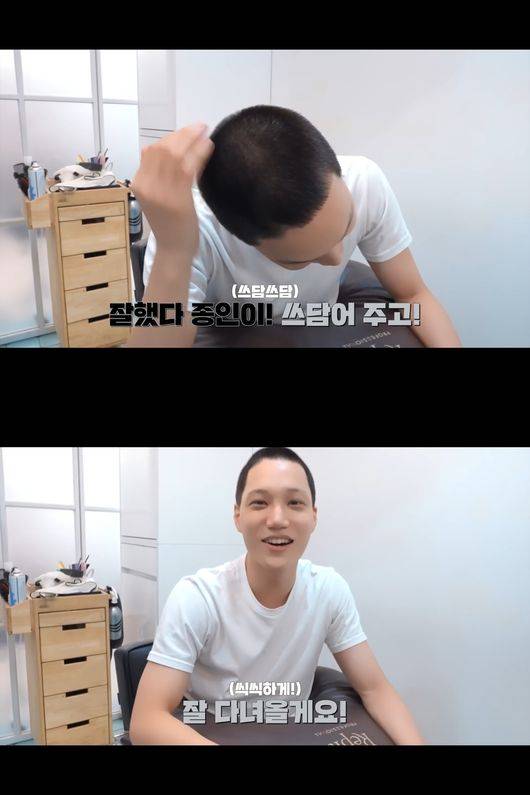 20일 엑소의 공식 유튜브 채널에서는 ‘와 그냥 진짜 밤톨인데?!’라는 제목의 영상이 공개됐다. 영상에서는 입대 전 팬미팅 백스테이지 현장과 입대 전날 머리를 미는 카이의 모습이 담겼다.