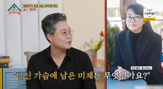 21일 방송된 KBS 2TV '옥탑방의 문제아들'(이하 '옥문아들')에는 대한민국 최초 여성 강력계 반장 박미옥 전 형사가 출연했다.
