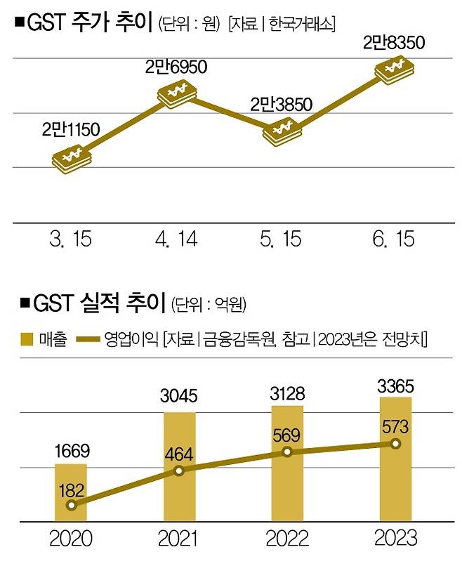 탄탄한 실적과 저평가된 주가도 GST의 투자 매력 중 하나다. GST의 실적은 꾸준히 성장하고 있다. 2018년 1298억원이었던 매출액은 지난해 3128억원으로 증가했다. 같은 기간 영업이익은 104억원에서 569억원으로 다섯배 이상 늘어났다.