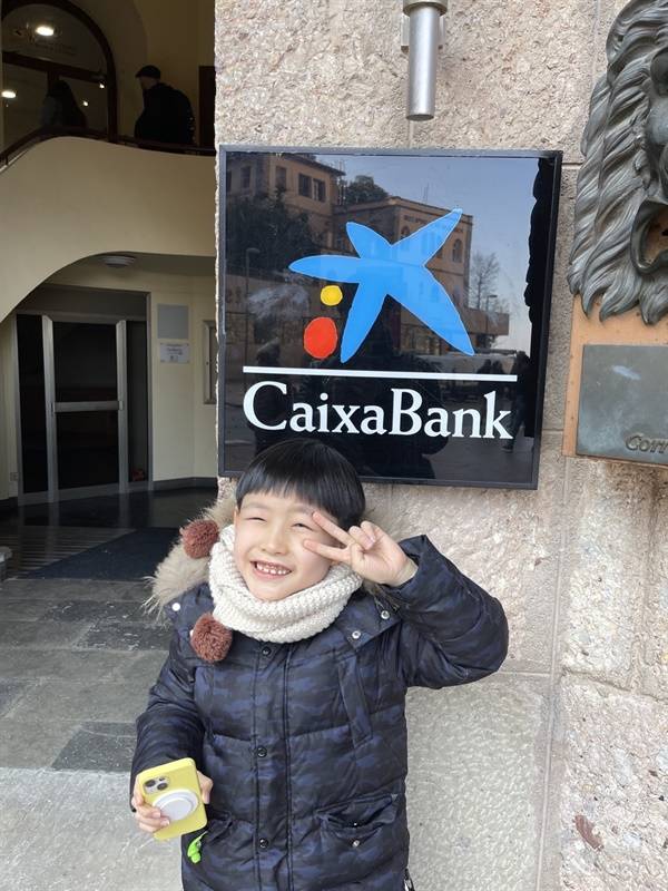 | ▲ 후안 미로가 디자인한 가이사 뱅크의 로고 아래서 저금통에 동전을 넣는 사람을 형상화 했다고 한다. 미로 아래서 가우디를 외치다. |