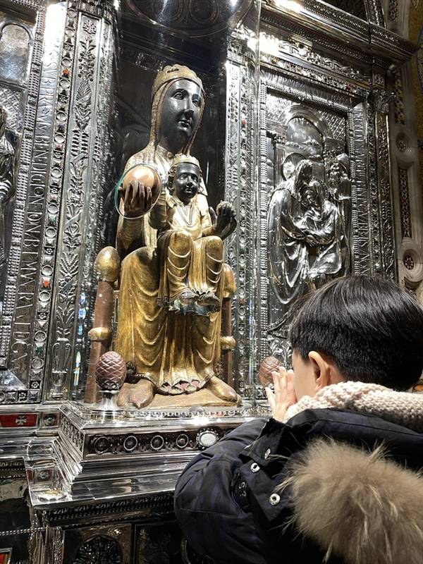 | ▲ 검은 성모상 몬세라트 대성당의 검은 성모상. 치유능력이 있다는 속설에 따라 많은 관광객이 줄지어 순서대로 성모에게 짧은 기원을 드린다. |
