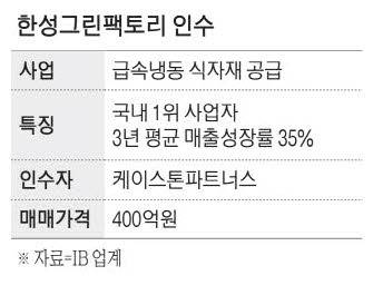 중견 사모투자펀드(PEF) 운용사 케이스톤파트너스가 국내 급속냉동(IQF) 식자재 1위 기업인 한성그린팩토리의 경영권을 확보했다.