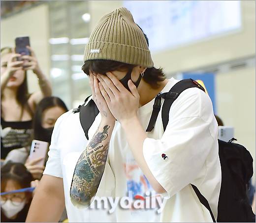 [마이데일리 = 인천 한혁승 기자] BTS 정국이 팬 배웅에 감동을 받아 전하며 얼굴을 가렸다.