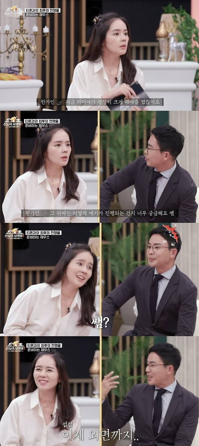 이에 한가인은 "가이아가 패배를 했는데 다음 전쟁은 어떻게 되는 지 궁금해요"라며 설민석을 불렀다.