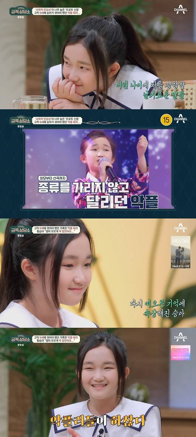 황승아 “울었다고 악플, 부모욕까지” 고작 9세였는데(금쪽상담소)[어제TV]