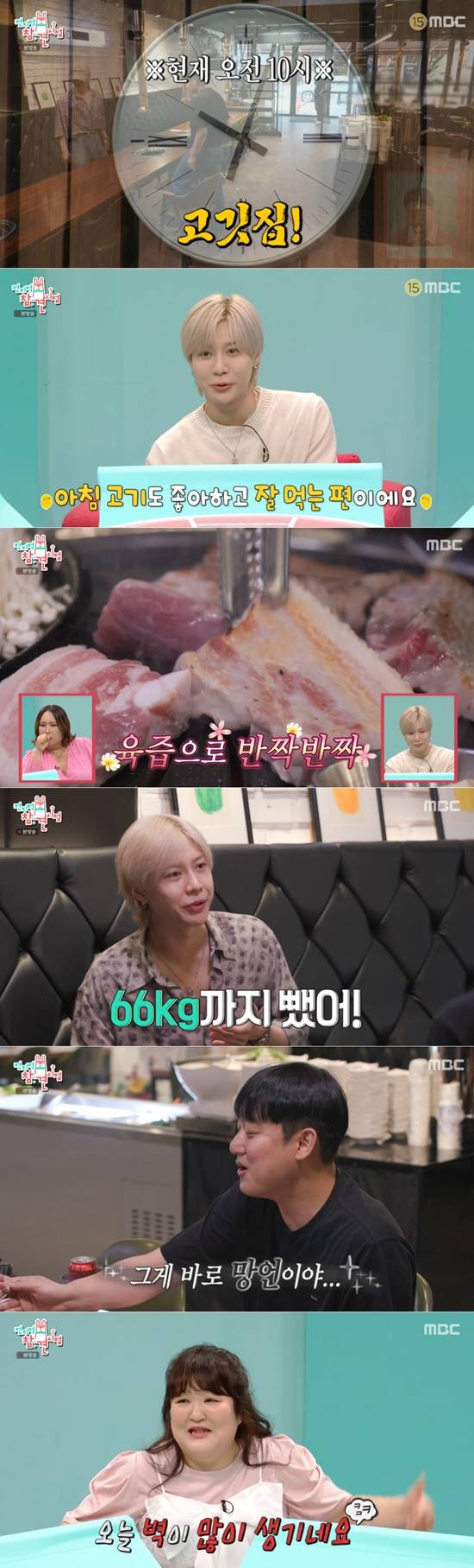 태민은 7년 넘는 세월을 함께한 매니저와 이른 아침부터 고깃집을 찾았다. 출연진들이 실제 상황인지 의도된 연출인지 묻자 태민은 "저한테 선입견이 있는 것 같다. 생각보다 아침에 고기 먹는 것도 좋아하고 잘 먹는 편이다"라고 밝혔다.