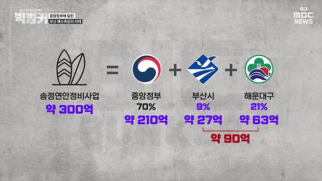 부산 해운대구도 해운대 송정해수욕장 연안 정비사업을 위한 총사업비로 약 300억 원을 추산하고 있는데요, 전액 국비 지원을 받지 못하면 해운대구가 부담해야 할 돈이 적지 않습니다.