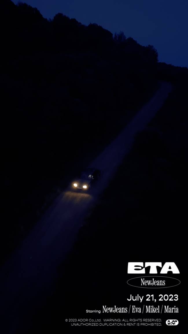 6월 26일 공개된 'ETA' 뮤직비디오 티저 영상에는 어둠 속 도로를 질주하는 자동차의 모습이 나온다.