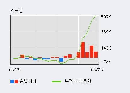 한편 외국인은 이 종목에 대해서 최근 5일 연속 62.2만주 순매수를 하고 있다. 더욱이 전일 외국인이 대량 순매수를 하고 있어 투자자들의 관심이 집중되고 있다.