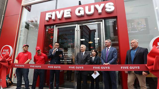 개업식에는 김동선 한화갤러리아 전략본부장과 필립 골드버그 주한미국대사, 미국 파이브가이즈 경영진 등이 참석했습니다.