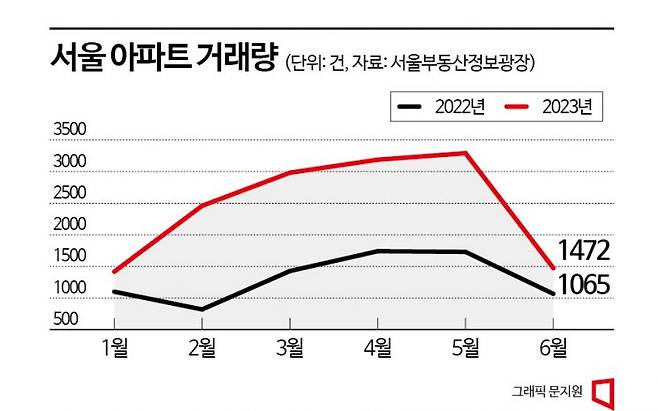 최근 시장과 일부 학계에서 '집값 바닥론'이 커지는 것은 아파트값 하락폭 둔화와 거래량 증가가 원인이다. 서울의 올해 1분기 아파트 매매 거래량은 6858건으로 지난해 같은 분기(3343건) 대비 105.1% 급증했고, 올해 2분기도 이날 기준 7953건으로 75.4% 늘었다. 한국부동산원이 집계한 전국 아파트 매맷값 하락폭은 지난주 -0.01%까지 좁혀졌고, 서울은 이미 5주째 상승세를 이어가고 있다.