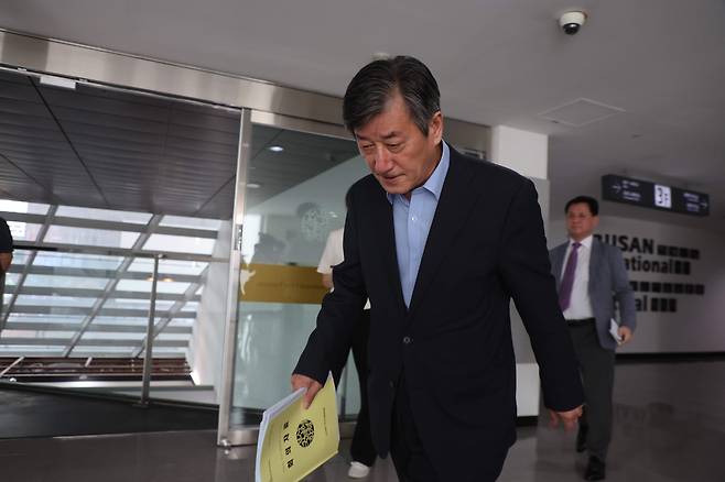 | ▲ 이용관 부산국제영화제 이사장이 지난 5월 24일 오후 부산 해운대구 영화의전당에서 열린 부산국제영화제 임시이사회에 참석하기 위해 회의실로 입장하고 있다. |