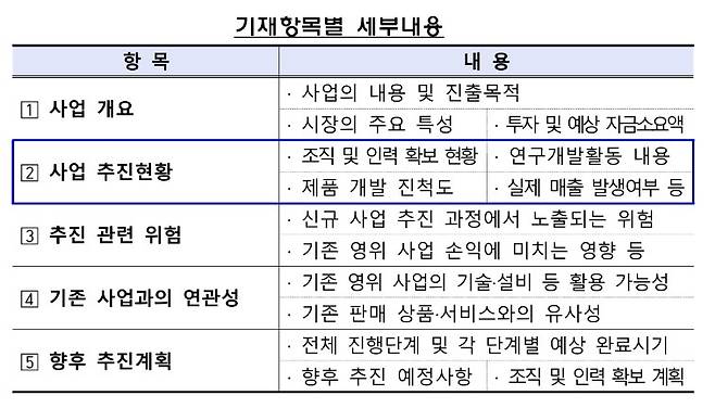 기존엔 정관상에 있는 사업이라도 내부 중요도, 기재시 불이익 가능성 등을 고려해 각 기업이 자체적으로 보고서 기재 여부를 결정했다. 신사업 진행 경과 등이 전혀 공개되지 않는 경우가 많았던 이유다.