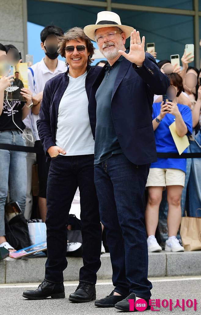 [텐아시아=조준원 기자]헐리우드 배우 톰 크루즈(Tom Cruise)와 크리스토퍼 맥쿼리 감독이 28일 오후 영화 '미션 임파서블: 데드 레코닝 파트 원'(이하 '미션 임파서블7') 홍보차 서울김포비지니스공항센터를 통해 입국하고 있다.