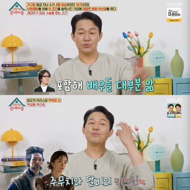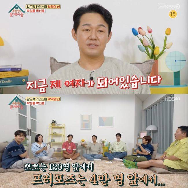 28일 방영된 KBS2TV 예능 ‘옥탑방의 문제아들’(이하 ‘옥문아들’)에서는 ‘믿고 보는 악역 끝판왕’ 박성웅과 ‘꽃미남 비주얼 신예’ 박선호가 출연했다. 박성웅은 아내 신은정과 드라마 ‘태왕사신기’에서 인연을 맺었던 바.