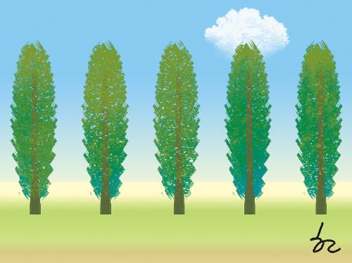 "미루나무 꼭대기에 조각구름 걸려 있네. 솔바람이 몰고 와서 살짝 걸쳐 놓고 갔어요." 아이들이 그렇게 노래한 이유 중 하나는 병풍처럼 펼쳐진 나무가 만들어 내는 풍광이 아름다웠기 때문입니다.