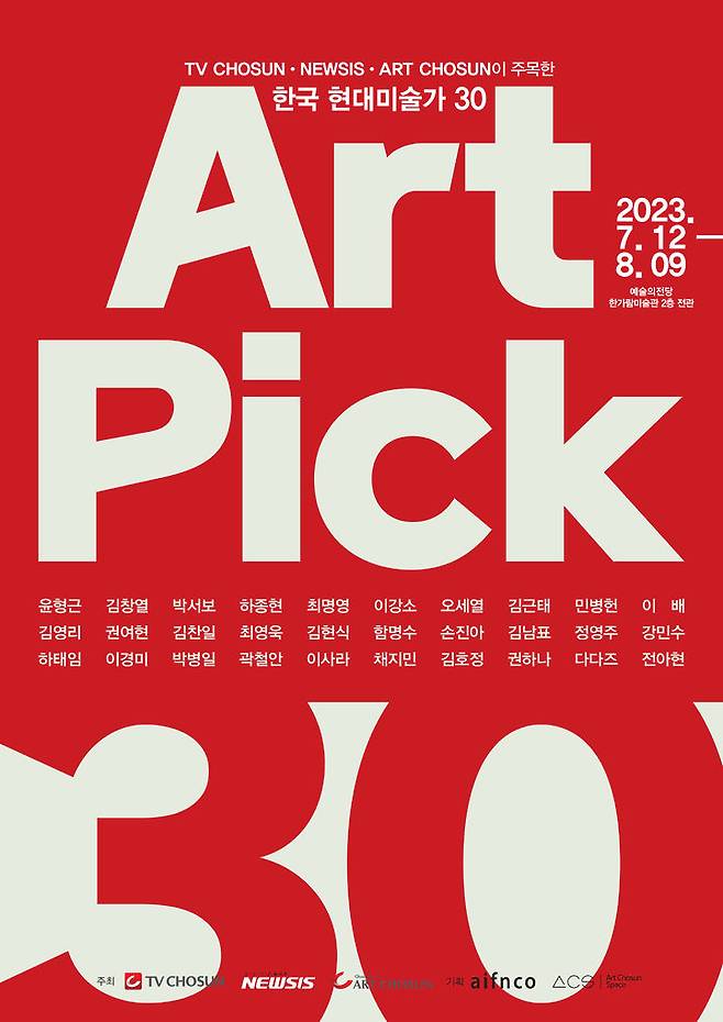 국내 최초 미디어 연합 전시 ‘Art Pick(아트픽) 30’전이 오는 7월12일 오후 3시 서울 예술의전당 한가람미술관 2층에서 개막한다. 뉴시스와 TV CHOSUN, ART CHOSUN이 공동 주최해 국내 주목 받는 현대미술가 30인을 한자리에 모은 이 전시는 국내 최대 민간통신사와 국내 최고 종합편성채널이 선정한 작가들이라는데 의미가 있다. 참여하는 작가와 작업세계를 소개한다.<편집자주>