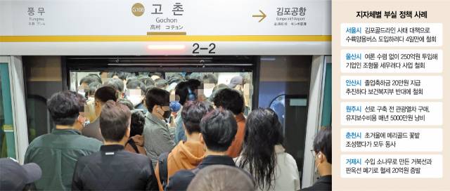 지방자치단체들이 충분한 검토 없이 정책을 추진하다가 철회 또는 혈세 낭비로 이어지는 사례들이 잇따르고 있다. 지난해 하반기부터 부동산 경기가 얼어붙고 경제가 위축되면서 지자체의 재정 여건도 열악해졌지만 보여주기식·인기영합식 정책이 난무하는 상황이다.