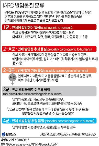 IARC는 화학물질 등 각종 환경 요소의 인체 암 유발 여부와 정도를 5개군으로 분류·평가해오고 있는데 아스파탐이 분류될 '발암가능 물질'인 2B군은 인체 자료가 제한적이고 동물 실험 자료도 충분하지 않은 경우에 해당한다.