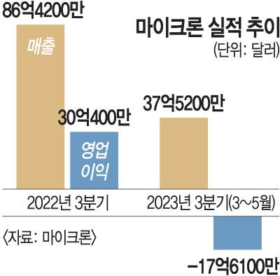 마이크론은 회계연도 기준으로 올해 3분기(3~5월)에 매출 37억5000만 달러, 영업적자 17억6100만 달러를 기록했다고 28일(현지시간) 밝혔다. 매출은 전년 동기 대비 56.6% 줄었다. 하지만 시장 전망치(36억5000만 달러)를 웃돌았다. 영업적자도 전 분기(23억300만 달러)보다 감소했다. 산자이 메로트라 마이크론 최고경영자(CEO)는 “메모리 산업이 매출 측면에서 저점을 지났다고 믿는다. 공급과 수요의 균형이 회복됨에 따라 수익성도 개선될 것”이라고 말했다.