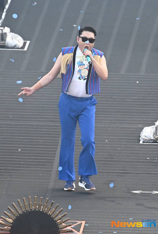 가수 싸이(PSY)가 6월 30일 오후 서울 송파구 잠실종합운동장 주 경기장에서 열린 싸이 흠뻑쇼 SUMMER SWAG 2023에서 무대를 펼치고 있다.