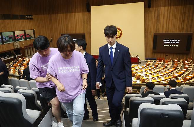 이날 이태원 참사 유가족들은 국회 본회의장 방청석에서 신속처리안건(패스트트랙)으로 지정되자, 박수를 치며 눈물을 흘렸다.