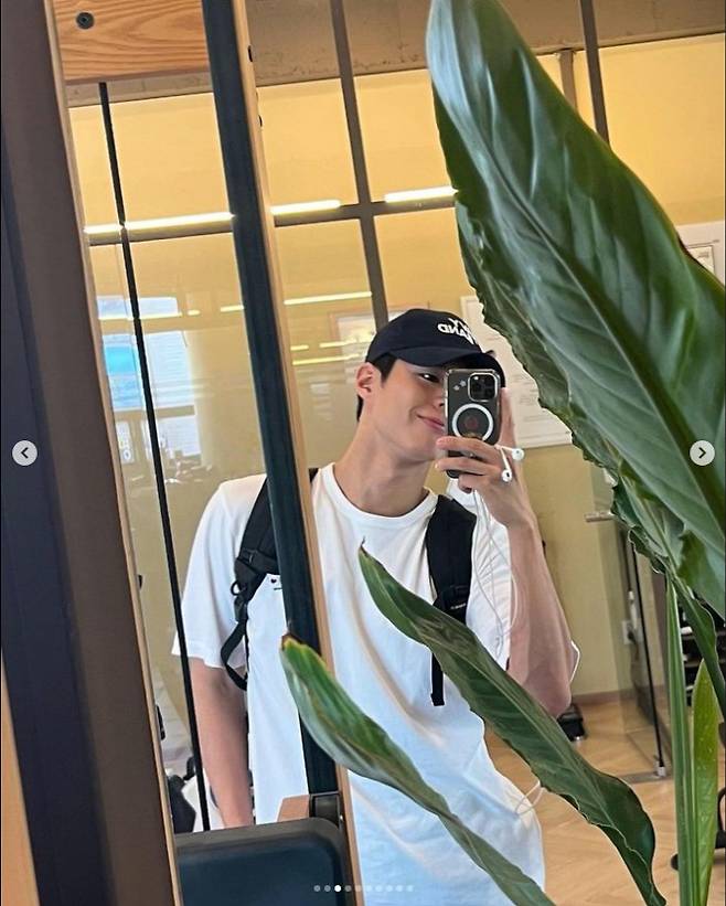 흰 티에 모자를 쓴 박보검은 거울을 이용해 셀카를 찍는가 하면, 차에 앉아 찍기도 했다.