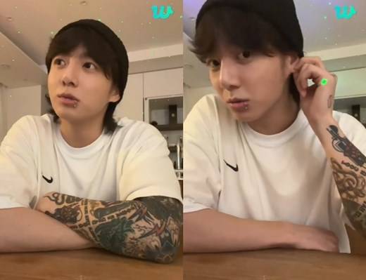 최근 정국은 팬 커뮤니티 플랫폼 위버스를 통해 라이브 방송을 진행했다.