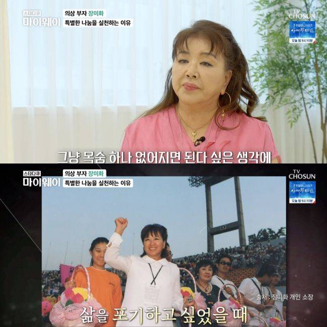 실제 장미화는 오랜 시간 꾸준히 나눔을 실천하고 베풀고 있었다. 나눔 실천 이유를 묻자 장미화는 “‘왜 살아야 하나. 너무 힘들다. 그렇게 열심히 살았는데 내 돈은 다 어디 가고 내가 이렇게 해야 하나’ 이런 생각을 할때 정말 죽고 싶고 살기 싫었다.그냥 목숨 하나 없어지면 된다는 생각에 8층 창문을 수없이 열었다 닫았다 했다”라고 고백했다.
