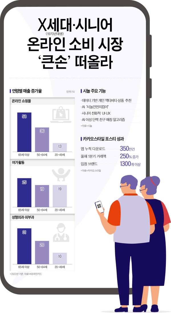 키오스크 앞에서 조작법을 몰라 헤매던 시니어의 모습이 사라진지 오래다. 'MZ세대(1980년대 초~2000년대 초 출생)'라는 단어가 온·오프라인 소비 시장을 점령하는 사이 조금씩 모바일 생태계에 적응하더니 이제는 핵심 고객으로 떠오르는 모습이다.
