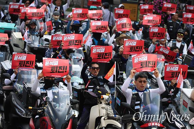 | ▲ '윤석열 퇴진' 피켓 든 배달노동자들. |