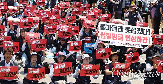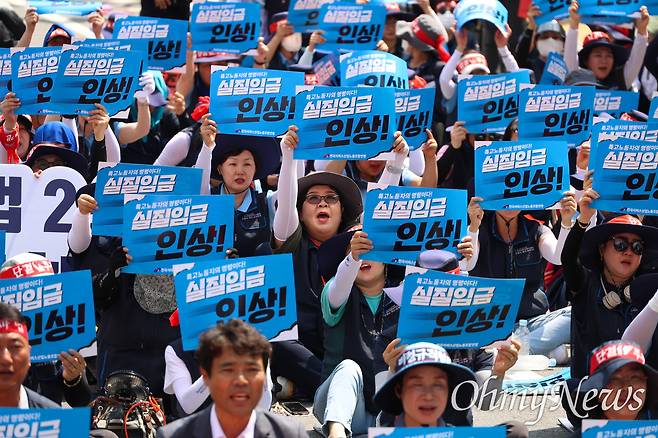 | ▲ ''실질임금 인상'을 촉구하는 노동자들. |