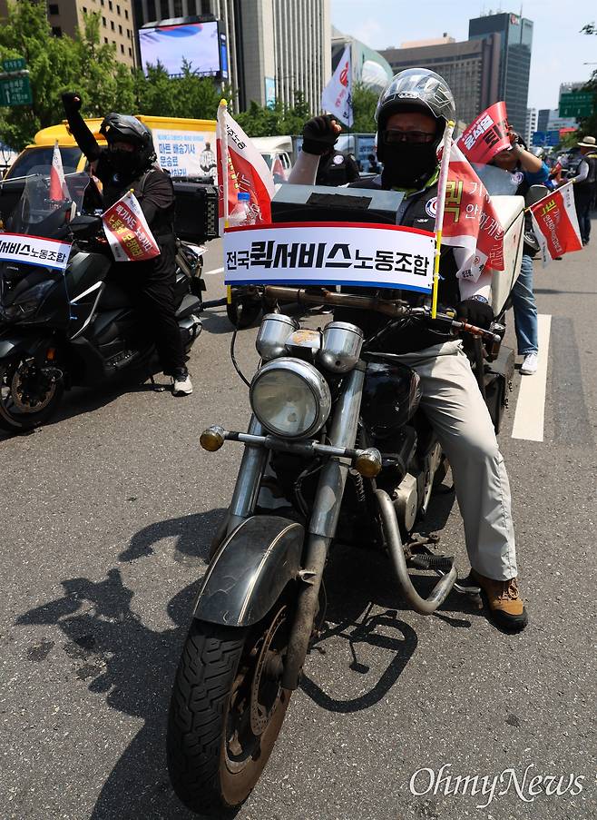 | ▲ 서비스연맹 특수고용노동자 파업대회에 참가한 퀵서비스 노조원. |