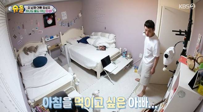 그럼에도 정성호는 지친 기색 없이 아침 식사를 차렸으나 밥을 먹지 않겠다는 첫째 수아 양과 씨름을 해야 했다. 수아 양은 중학생으로 사춘기를 맞이한 바. 이에 정성호는 “아이가 중학교에 들어가면서 대화가 조금 단절됐다”며 씁쓸함을 표했다.