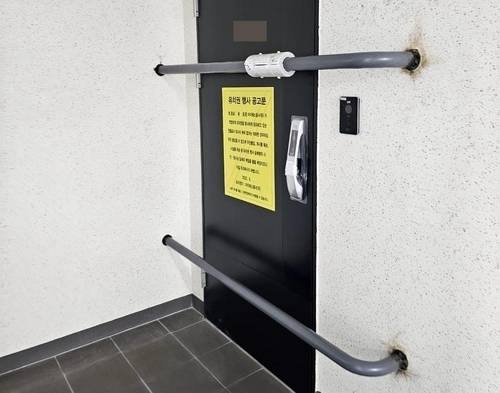 새 아파트 현관문에 쇠봉봉쇄…공사비 때문에 이렇게까지